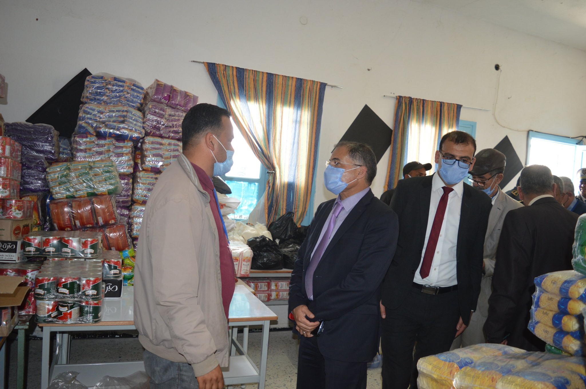 On 14 أبريل، 2020 by sarraفي اطار الحملة الوطنية لتجميع التبرعات من قبل رئاسة الحكومة لمجابهة جائحة كورونا ادى يوم الثلاثاء 14 افريل 2020 والي القيروان السيد محمد بورقيبة بمعية المعتمد الاول ومعتمد مركز الولاية و مدير اقليم الحرس الوطني زيارة الى مركز تجميع المساعدات العينية بمعتمدية بوحجلة بالمدرسة الاعدادية الامام سحنون