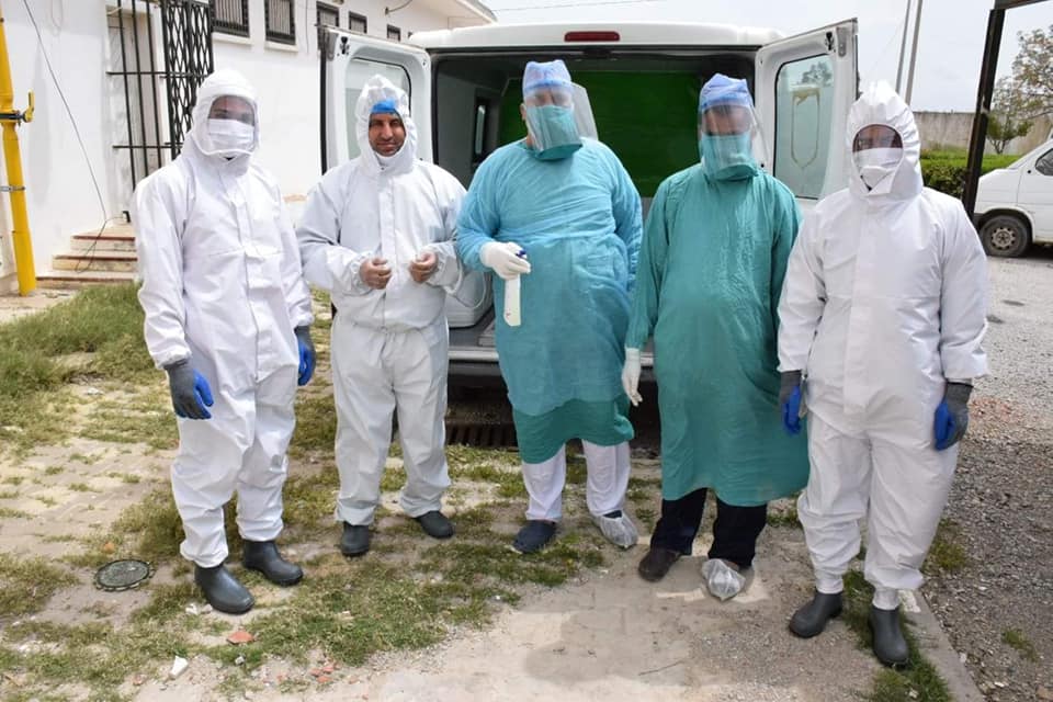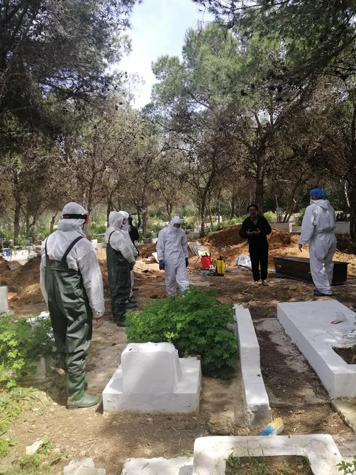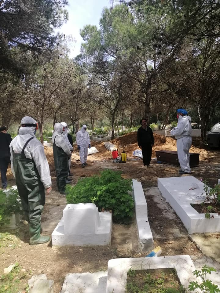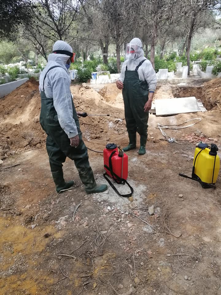 On 13 أبريل، 2020 by sarraقام صباح اليوم الإثنين 13 أفريل 2020 عدد من أعوان بلدية زغوان ومستشار بلدي ومتطوع عن المجتمع المدني ممن تلقو تكوينا في مراحل نقل ودفن جثث المصابين بفيروس كورونا COVID-19 بنقل جثمان المتوفي ليلة البارحة بالمستشفى الجهوي بزغوان إلى مقبرة قمرت من معتمدية المرسى مسقط رأسه وذلك وفق تدابير وإجراءات صارمة لتجنب العدوى.