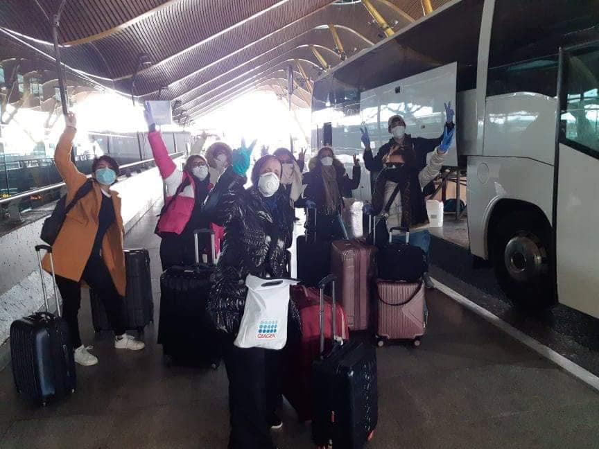 وقد تولت السفارة كراء حافلة لتأمين نقل المواطنين المذكورين عبر البر إلى مطار مدريد حتى يتسنى لهم السفر إلى تونس عبر رحلة شركة الخطوط الجوية الخاصة “Jasmin Airways”.
